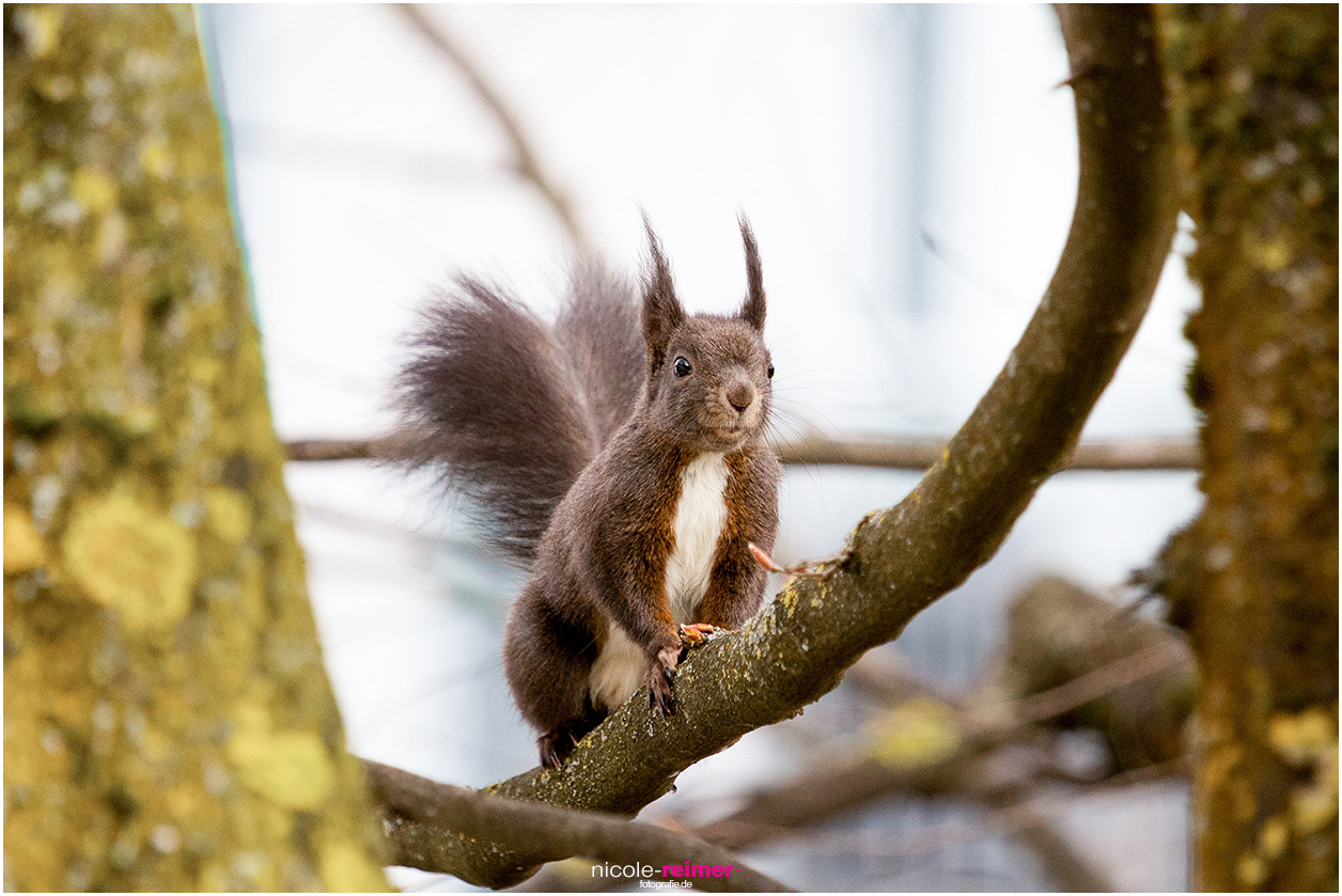 Dunkles Eichhörnchen auf einem Ast - Nicole Reimer Fotografie
